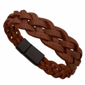 Καφέ δερμάτινο πλεκτό βραχιόλι