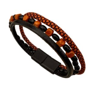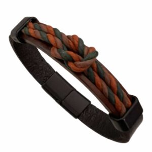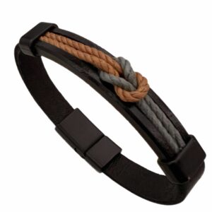 Μαύρο δερμάτινο βραχιόλι με γκρι και ταμπά κορδόνι