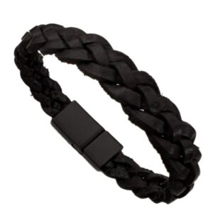 Μαύρο πλεκτό δερμάτινο βραχιόλι