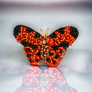 Καρφίτσα κεντημένη στο χερί με ζιργκόν και παγιέτες “Red Butterfly”