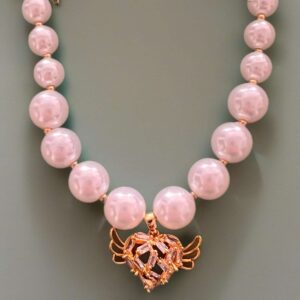 Κολιέ με πέρλες τύπου τσόκερ και μεταλλική καρδιά με κρύσταλλα