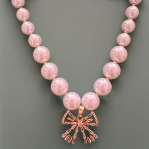 Κολιέ με πέρλες τύπου τσόκερ και μεταλλικό φιόγκο με κρύσταλλα
