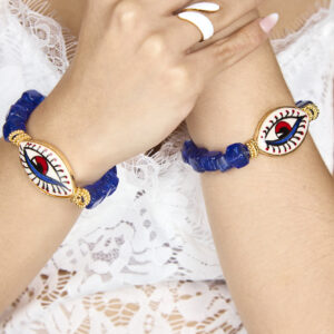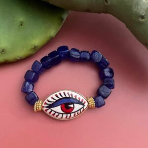 Βραχιόλι με γυάλινες χάντρες και κεραμικό μάτι ζωγραφισμένο στο χέρι Hard Blue