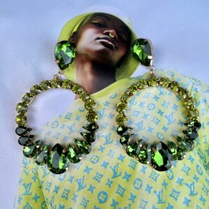 Σκουλαρίκια με κρύσταλλα και φτέρα Green II