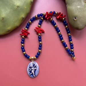 Κολιέ με κεραμικό μοτιφ καμεό με κοράλλι και αιματίτη Blue Eros II