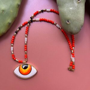 Κολιέ με κεραμικό μάτι και γυάλινες χάντρες V