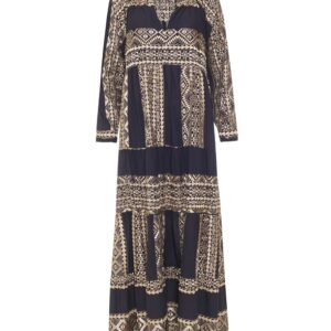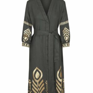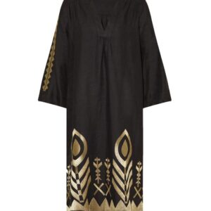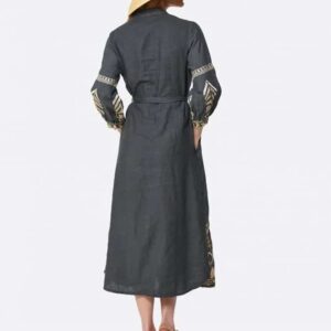 Black Gold Chemisier λινό φόρεμα με χρυσό κέντημα Greek Archaic Kori