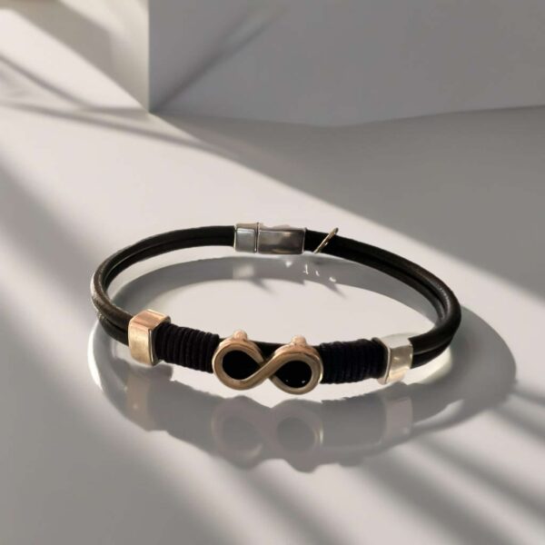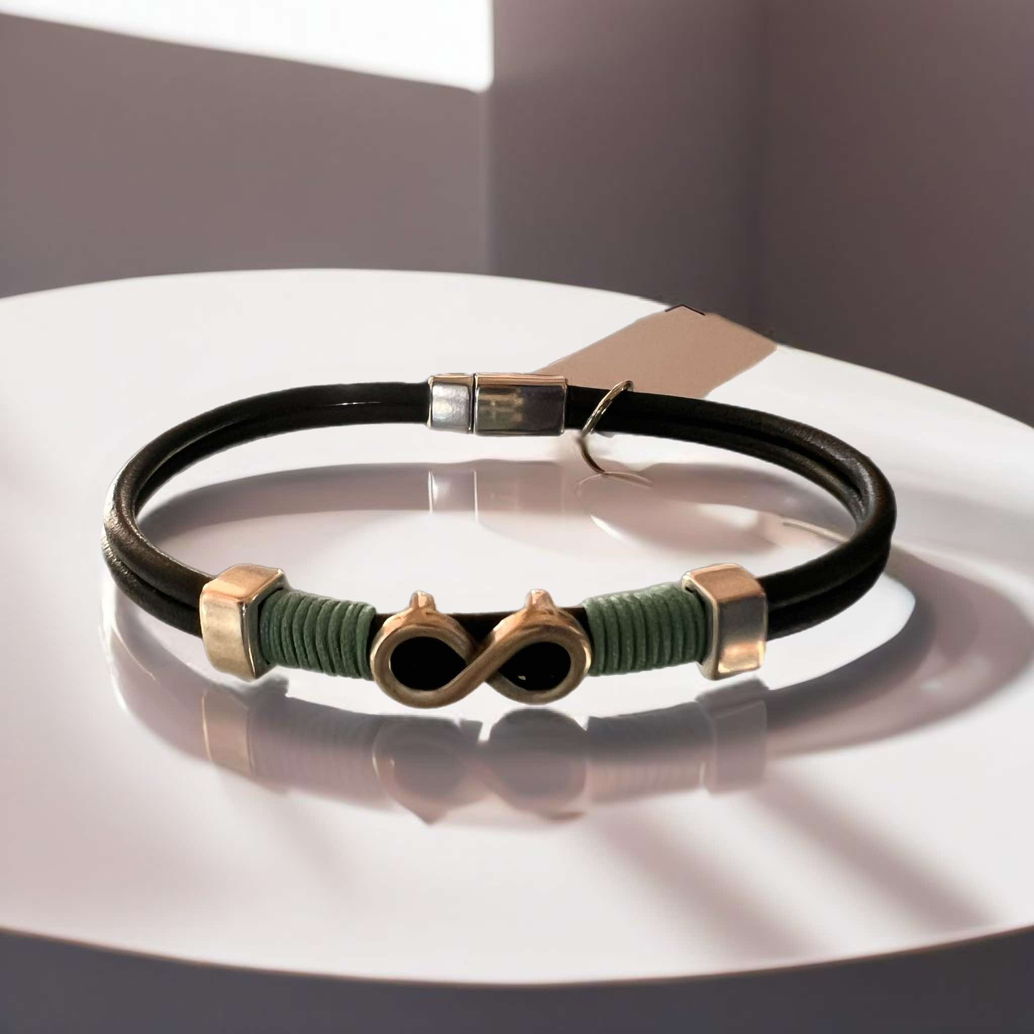 Δερμάτινο βραχιόλι με δεσίματα, επάργυρο άπειρο και μαγνητικό κούμπωμα
