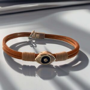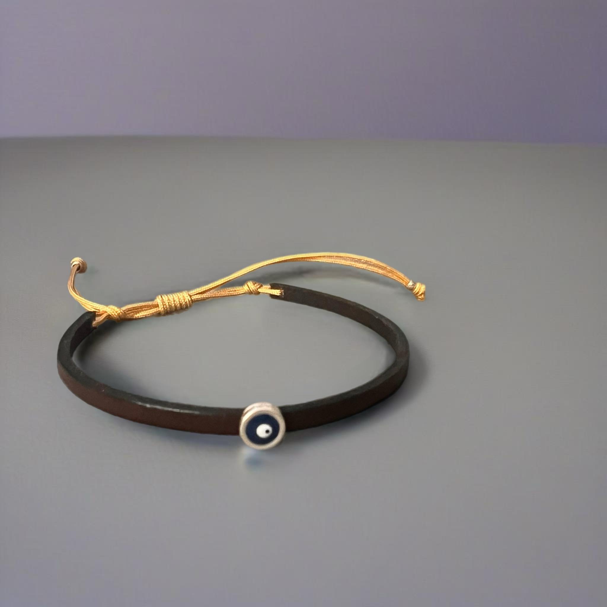 Δερμάτινο βραχιόλι με δεσίματα, επάργυρο ματάκι και μαγνητικό κούμπωμα