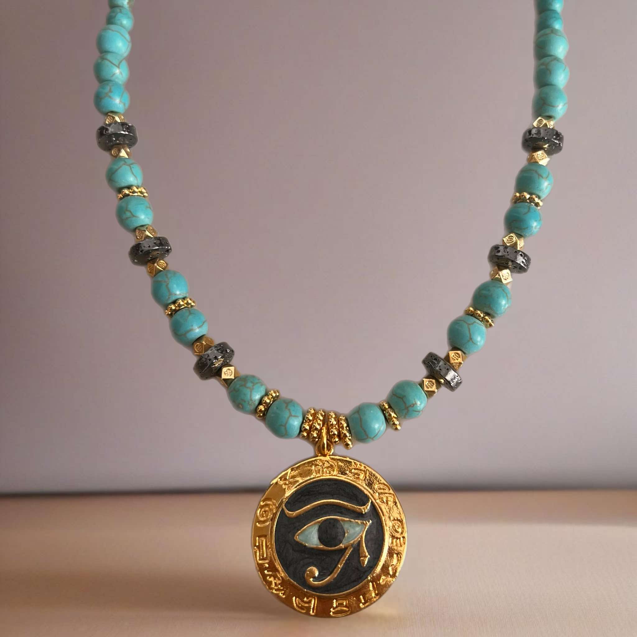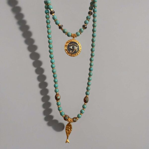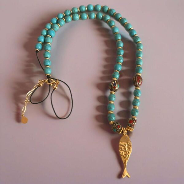 Χειροποίητο κολιέ από ορυκτές χάντρες από το Θιβέτ και μεταλλικό ψάρι