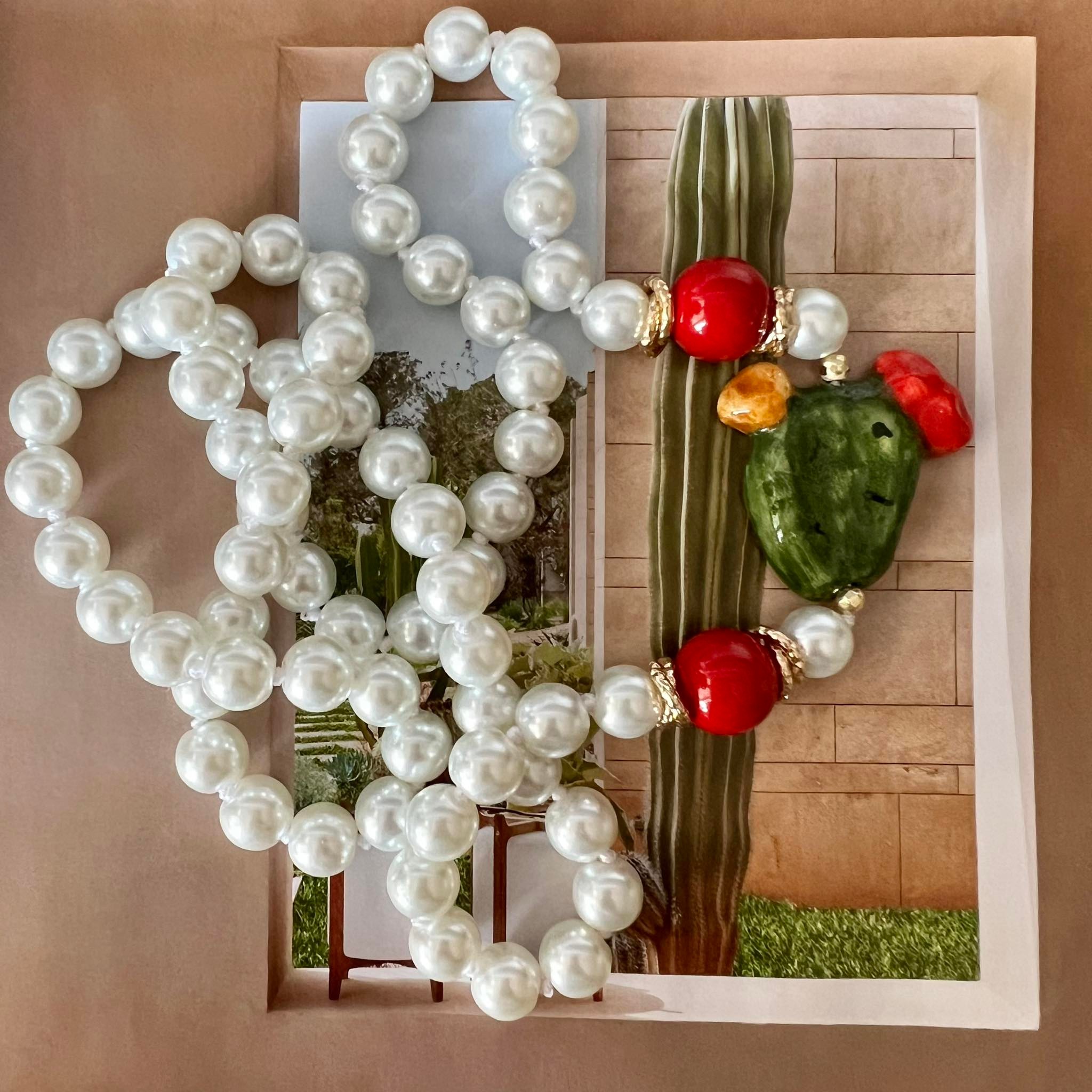 Κολιέ με κεραμικό Caltagirone Cactus με πέρλες