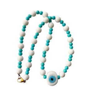 Κολιέ με χειροποίητο κεραμικό μάτι ζωγραφισμένο στο χέρι με λάβα και ακρυλικές χάντρες