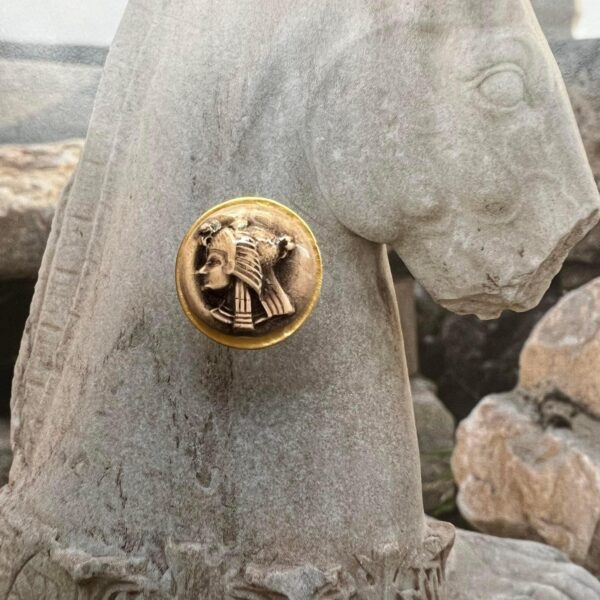 Δαχτυλίδι μέταλλο επιχρυσωμένο one size με κεραμικό καμεό Great Alexander II