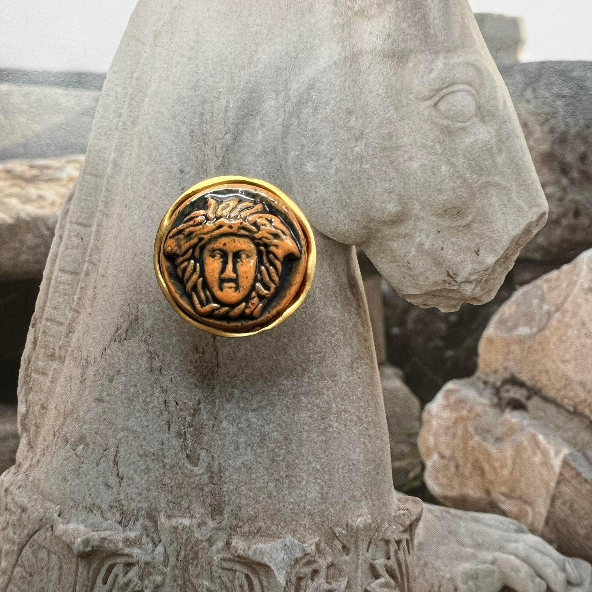 Δαχτυλίδι μέταλλο επιχρυσωμένο one size με κεραμικό καμεό Medusa ΙΙ