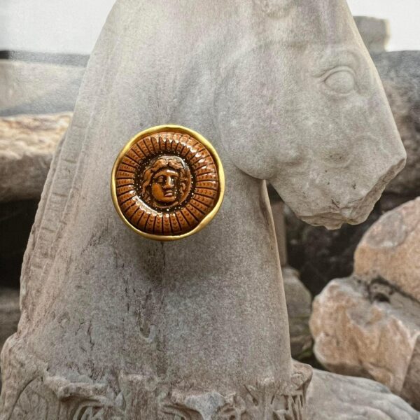 Δαχτυλίδι μέταλλο επιχρυσωμένο one size με κεραμικό καμεό Medusa ΙΙ