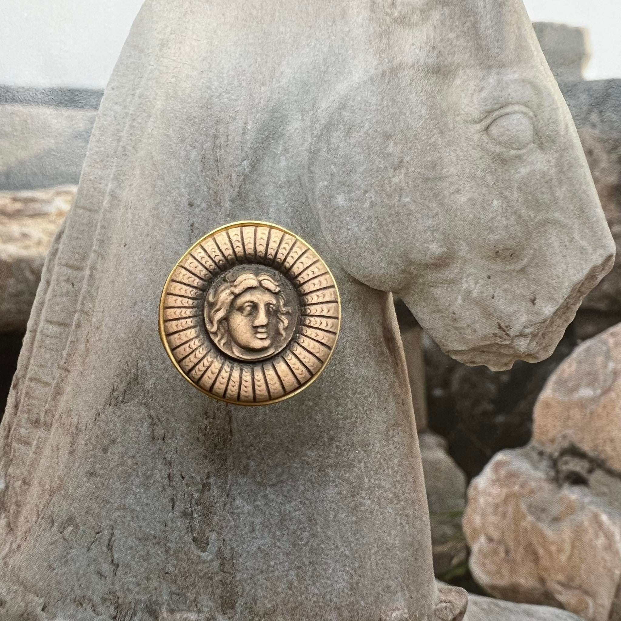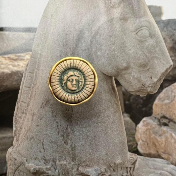 Δαχτυλίδι μέταλλο επιχρυσωμένο one size με κεραμικό καμεό Medusa ΙΙ