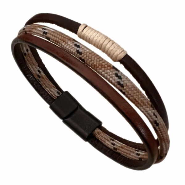 Καφέ δερμάτινο βραχιόλι με καφέ και ταμπά χάντρες και καφέ ταμπά σκοινί