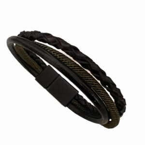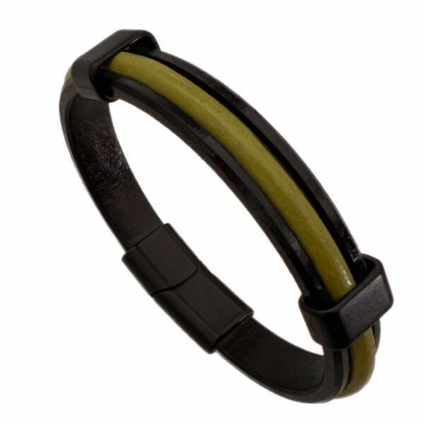Δερμάτινο βραχιόλι με μαύρο και λαδί δέρμα και μαύρα μεταλλικά στοιχεία