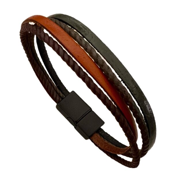 Καφέ δερμάτινο βραχιόλι με καφέ και κόκκινες λεπτομέρειες και μαύρα μεταλλικά στοιχεία