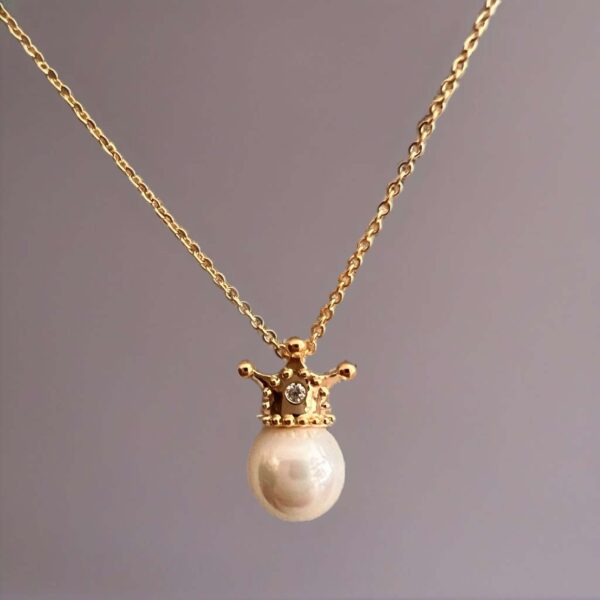 Επιχρυσωμένο κολιέ με πέρλα και στέμμα με κρύσταλλα από ανοξείδωτο ατσάλι
