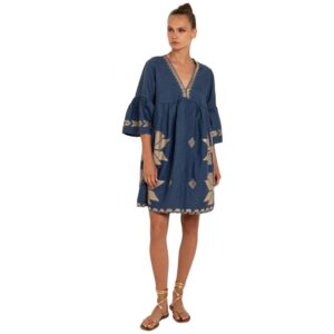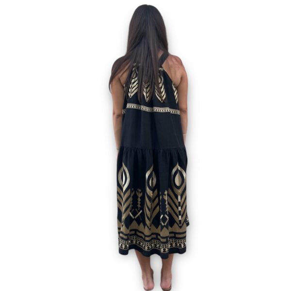 Maxi φόρεμα με χρυσό κέντημα και ρυθμιζόμενο δέσιμο στον λαιμό