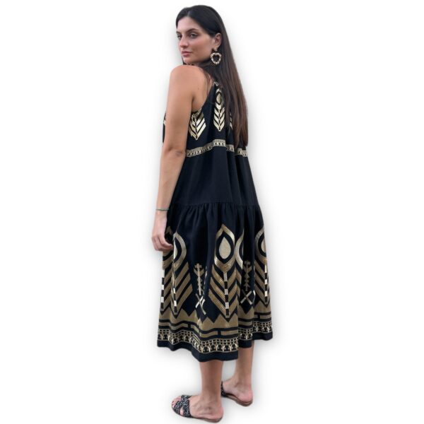 Feather μαύρο/χρυσό μακρύ λινό φόρεμα Greek Archaic Kori