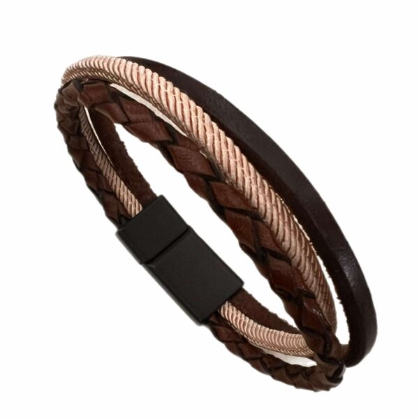 Δερμάτινο βραχιόλι με καφέ κορδόνι και μεταλλικά στοιχεία
