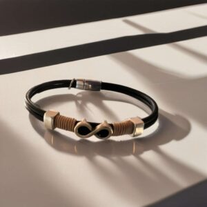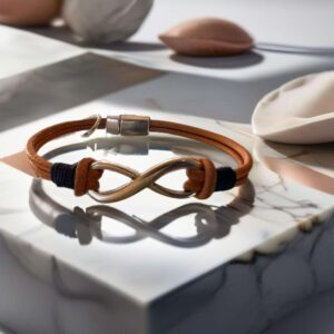 Δερμάτινο βραχιόλι με δεσίματα, επάργυρο άπειρο και μαγνητικό κούμπωμα