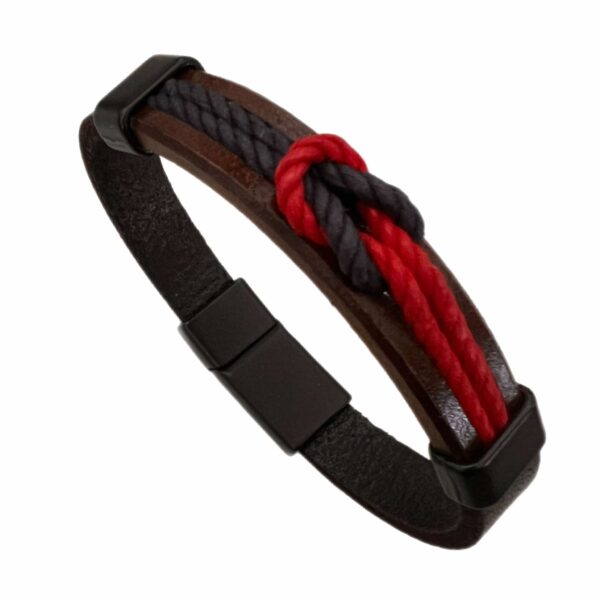 Καφέ δερμάτινο βραχιόλι με κόκκινο και μπλε κορδόνι