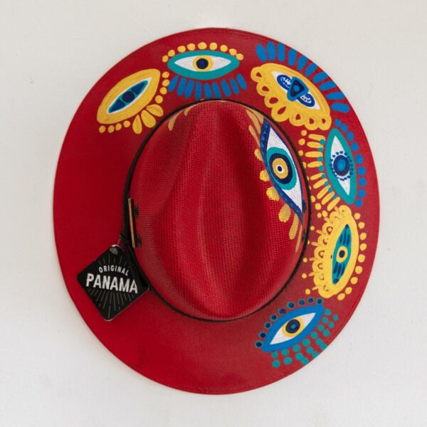 Καπέλο Panama χειροποίητο ζωγραφισμένο στο χέρι Red