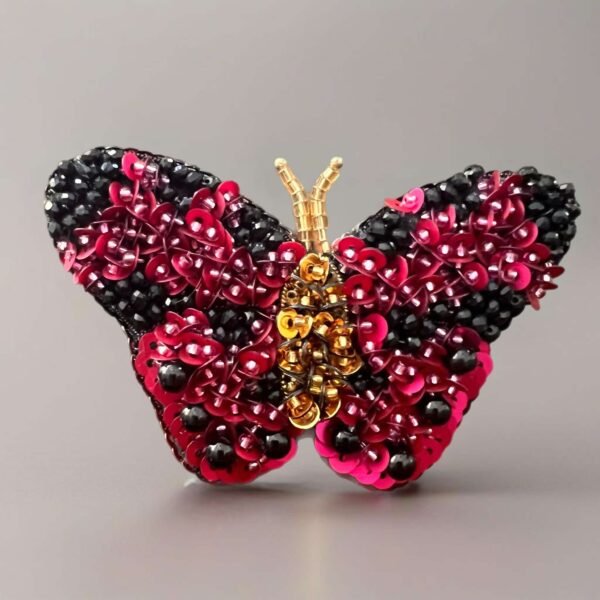 Καρφίτσα κεντημένη στο χέρι με ζιργκόν και παγιέτες “Red Butterfly”