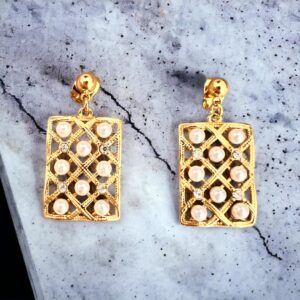 Σκουλαρίκια επιχρυσωμένο μέταλλο και ζιργκόν “Squared Pearl ΙV”