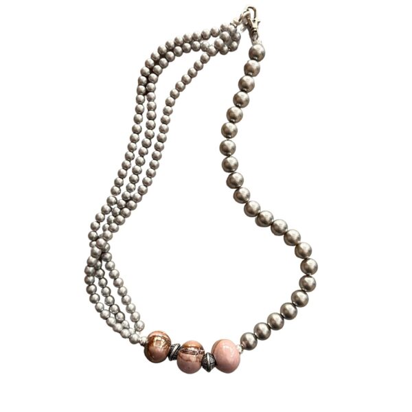 Κολιέ με ορυκτές χάντρες και ροζ αχάτης