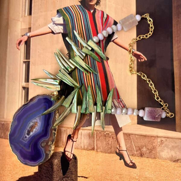 Κολιέ με αχάτη κοχυλια και ακρυλικες χάντρες