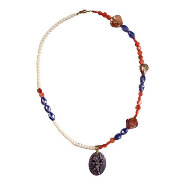 Κολιέ με ορυκτές χάντρες ακρυλικές και κεραμικό καμεο