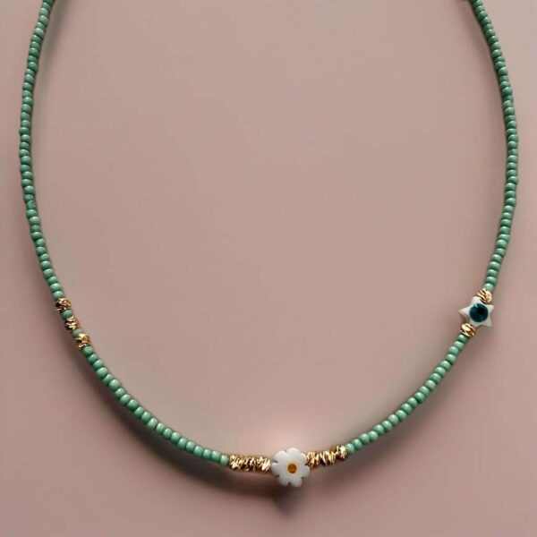 Κολιέ με χάντρες και μεταλλικό πασχαλίτσα ζωγραφισμένο με σμάλτο