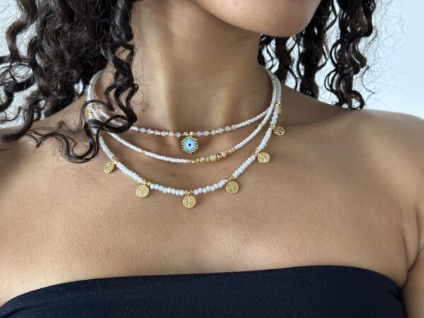 Κολιέ με χάντρες και μεταλλικό ματάκι με σμάλτο