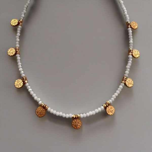 Κολιέ με λευκές και χρυσές χάντρες