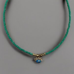 Κολιέ με χάντρες και μεταλλικό ματάκι με σμάλτο και κρύσταλλα