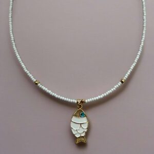 Κολιέ με χάντρες και μεταλλικό ψαράκι με σμάλτο