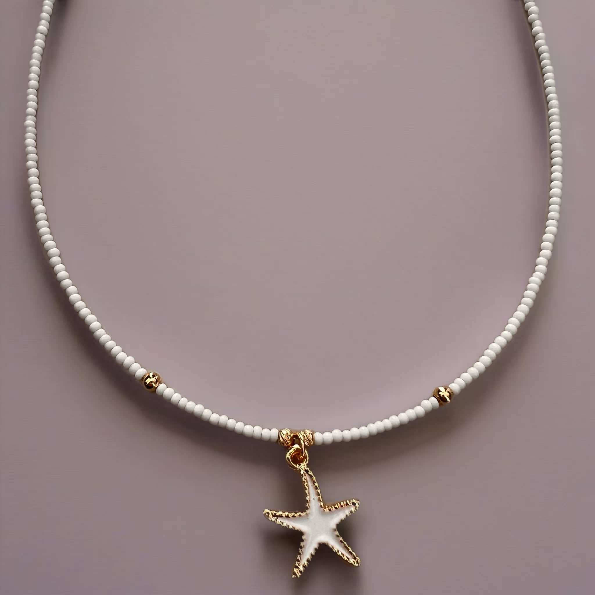 Κολιέ με χάντρες και μεταλλικό αστερία με σμάλτο