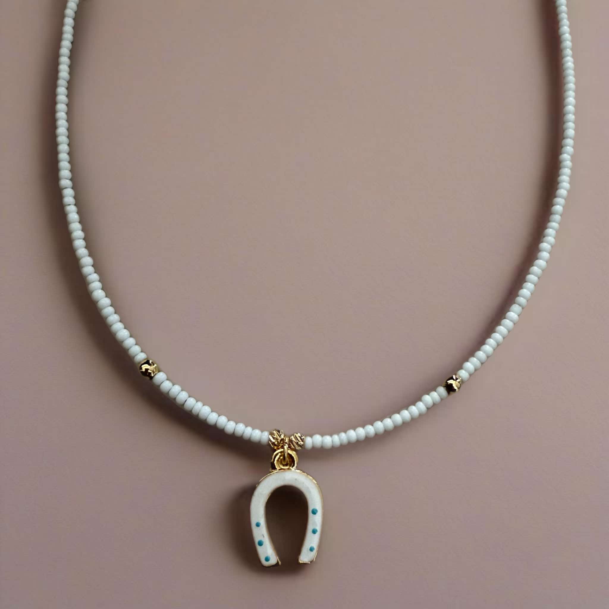Κολιέ με χάντρες και μεταλλικό ψαράκι ζωγραφισμένο με σμάλτο