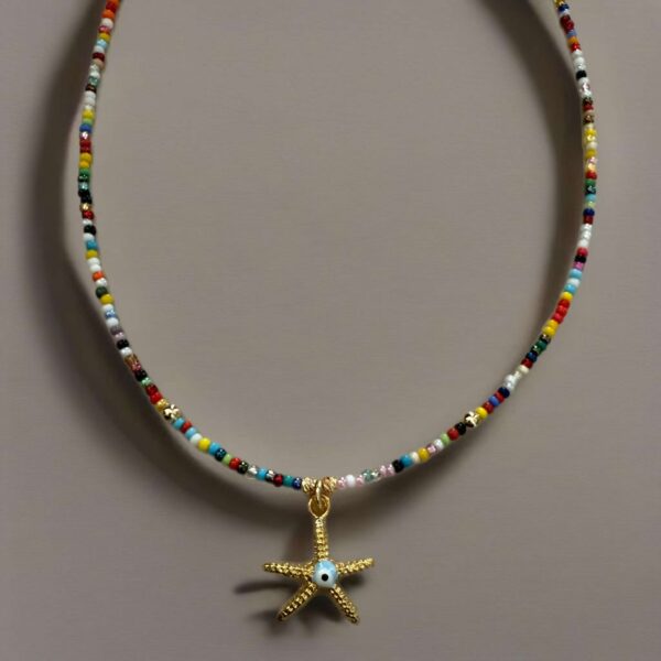 Κολιέ με χάντρες και μεταλλικό αστερία με σμάλτο