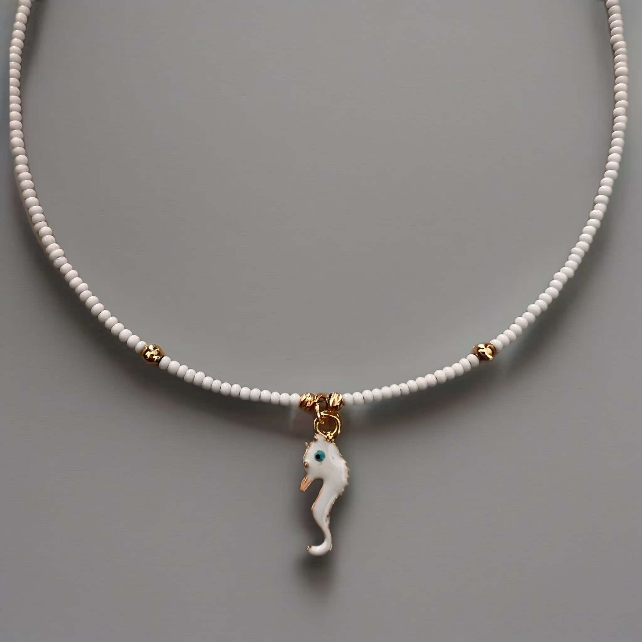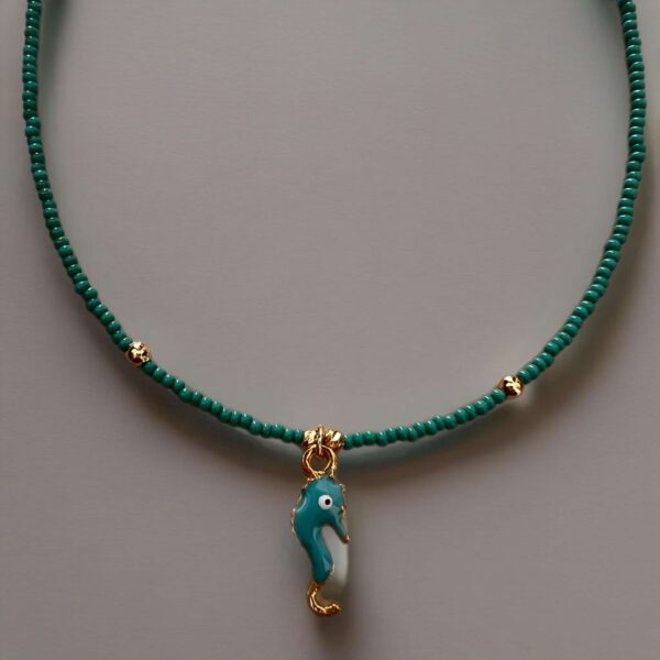 Κολιέ με χάντρες και μεταλλικό ιππόκαμπο με σμάλτο