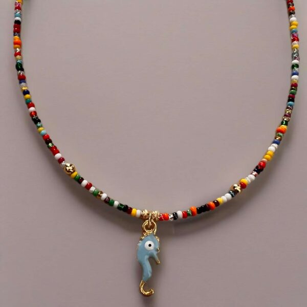Κολιέ με χάντρες και μεταλλικό ιππόκαμπο με σμάλτο