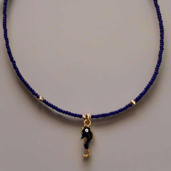 Κολιέ με χάντρες και μεταλλικό ιππόκαμπο με σμάλτο
