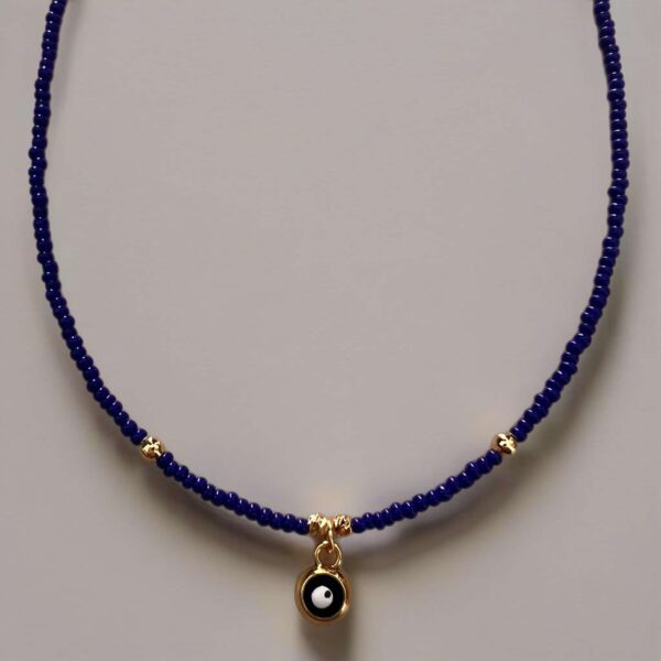 Κολιέ με χάντρες και μεταλλικό ματάκι με σμάλτο