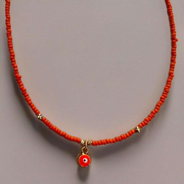 Κολιέ με χάντρες και μεταλλικό ματάκι με σμάλτο