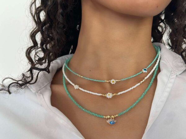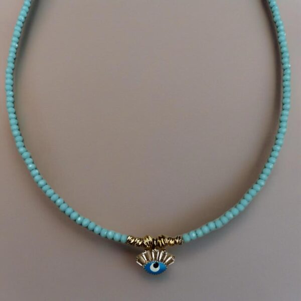 Κολιέ με χάντρες και μεταλλικό ματάκι με σμάλτο και κρύσταλλα
