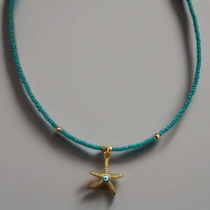 Κολιέ με χάντρες και μεταλλικό αστερία ζωγραφισμένο με σμάλτο